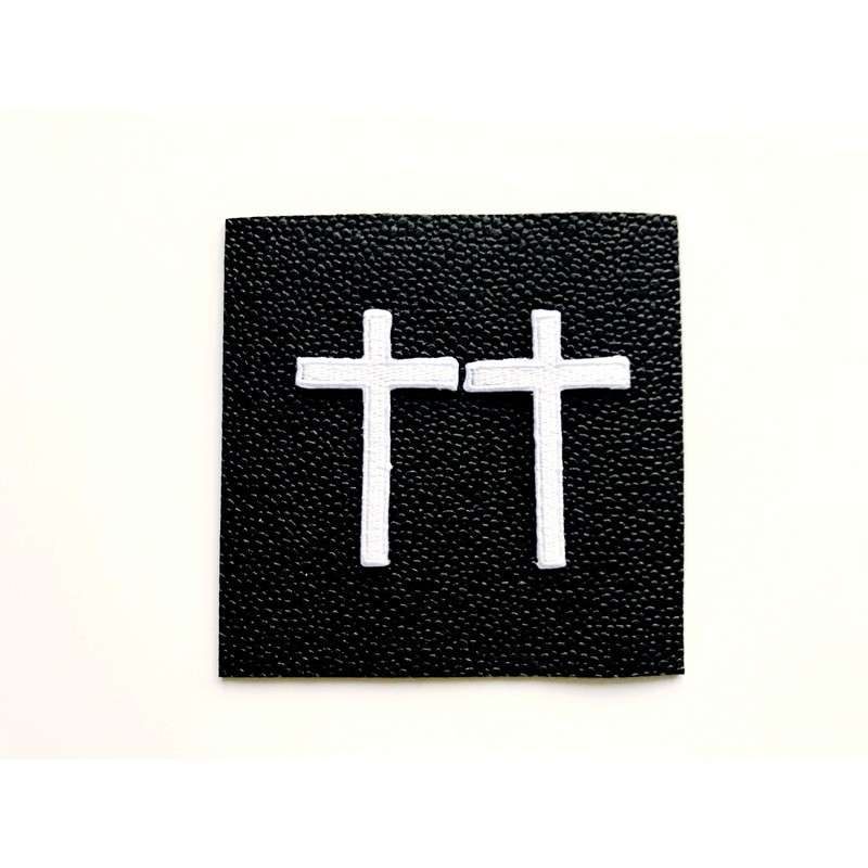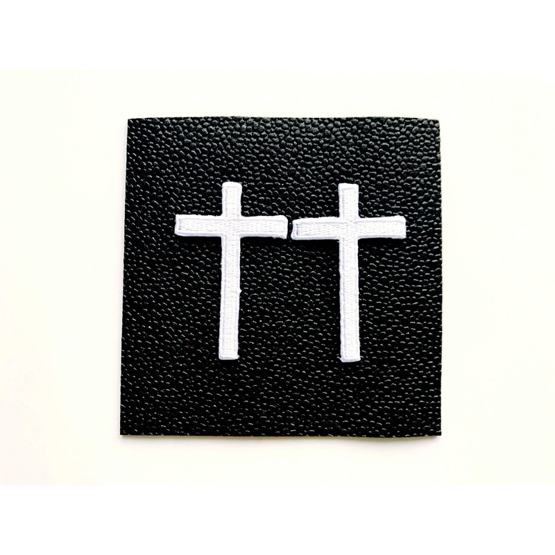TH Set of 2 Tiny. Mini White Cross Logo Biker Motorcycle Sew Iron on Embroidered Applique Badge Sign Patch Clothing etc.