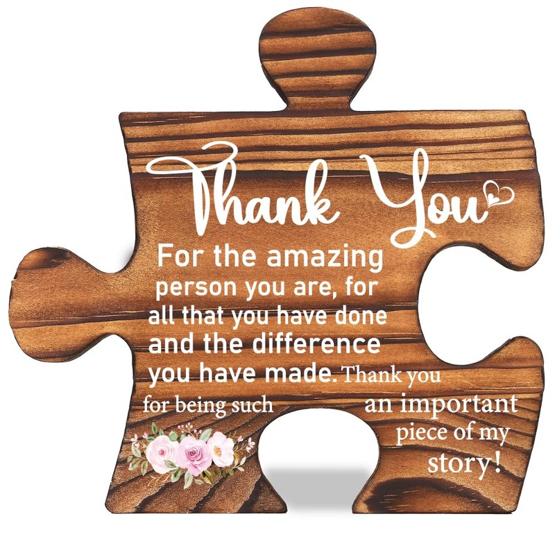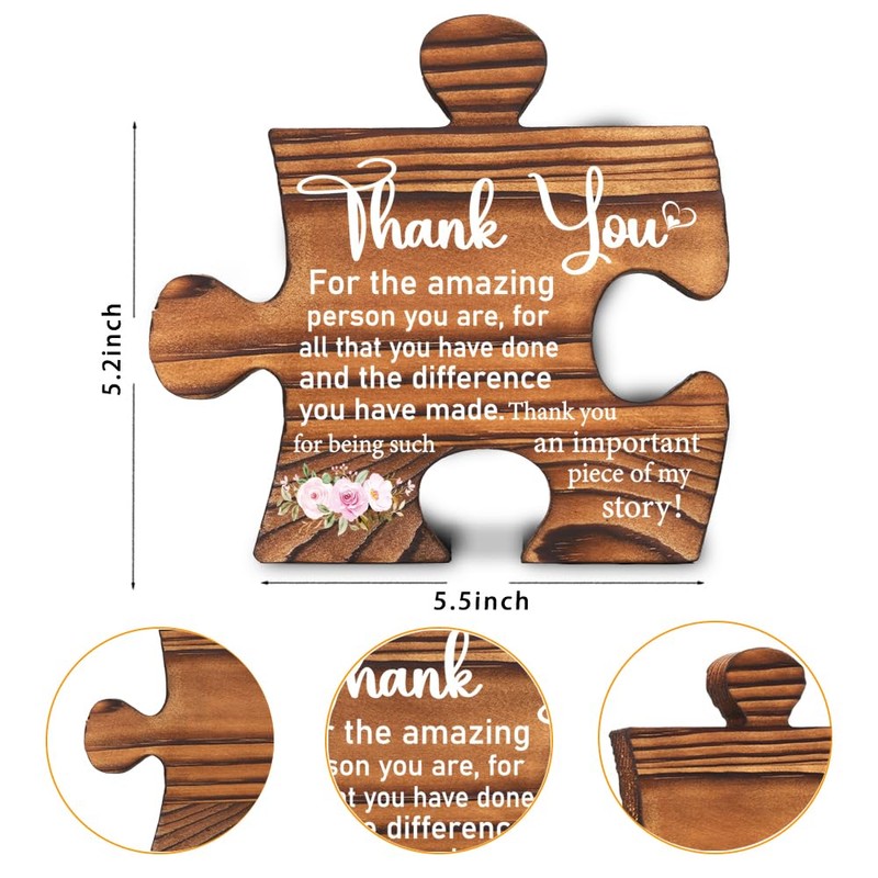 Thank You Appreciation for Women Teacher Mentor Nurse Volunteer, Christmas, Birthdays, Thanksgiving Gifts for Coworker Friend, Wooden Rustic Farmhouse Puzzle Signs Plaques VE166