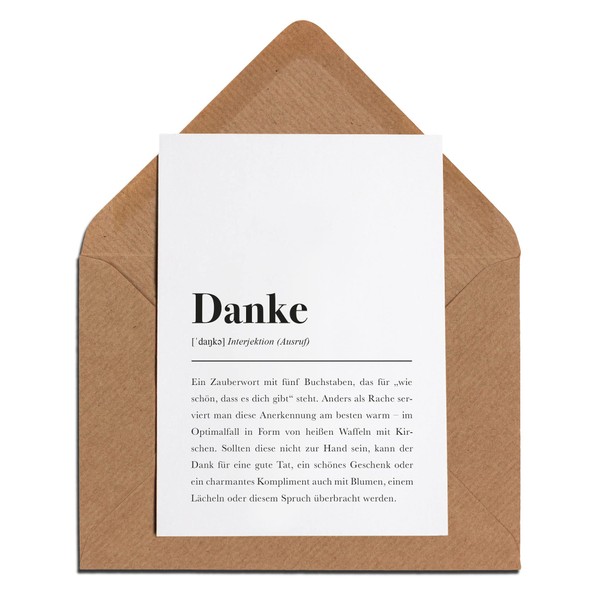 - The card comes with a matching kraft envelope, a brown paper with a particularly beautiful textured surface. Envelope size: DIN C6 (4.5" x 6.4") The envelope has a pointed flap and sticks by moistening the edge.