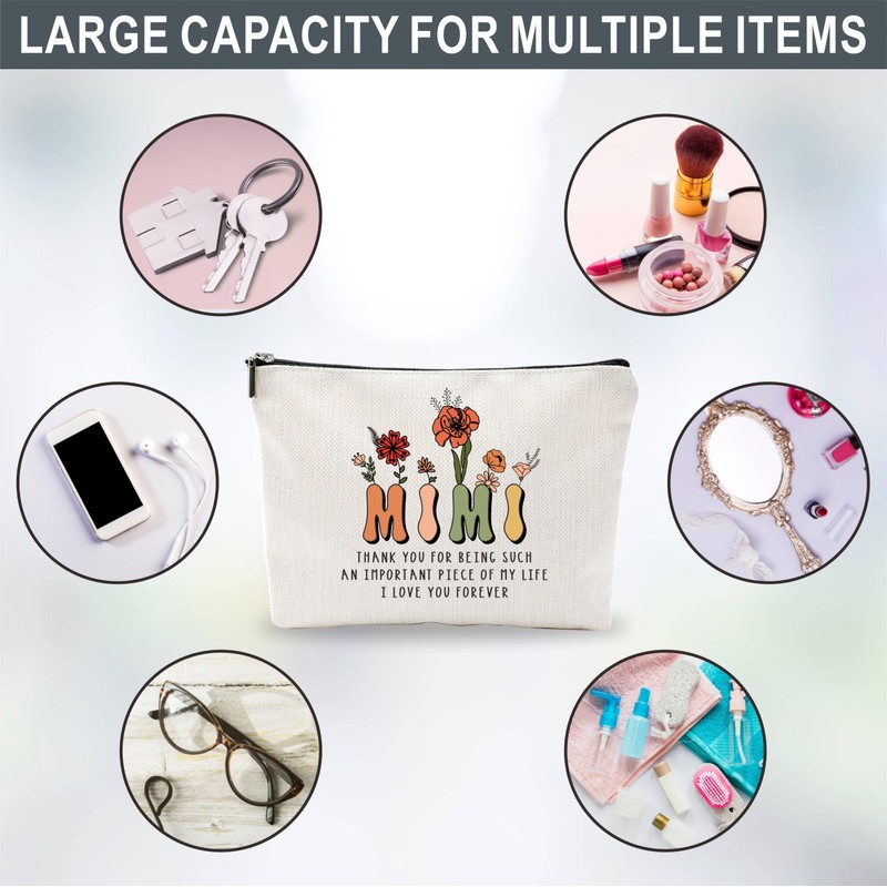Thank You Gift For Mimi, Cosmetic Bag For Grandma, Floral Make Up Bag For Grandmother, Birthday Gift For Granny Female, Mother's Day Gift, Thank You Gifts, Appreciation Gifts, Women Accessories - B04