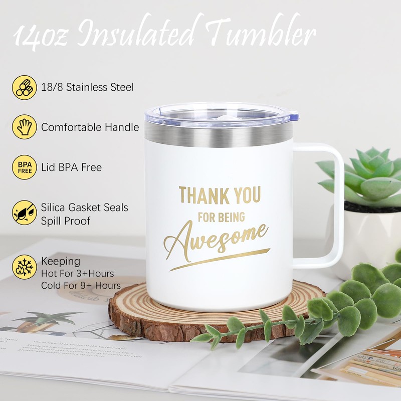 💛A 14oz coffee tumbler with handle can keep cold drinks hot for 9 hours and hot drinks for 3 hours, so you can enjoy your favorite beverage anytime you want.