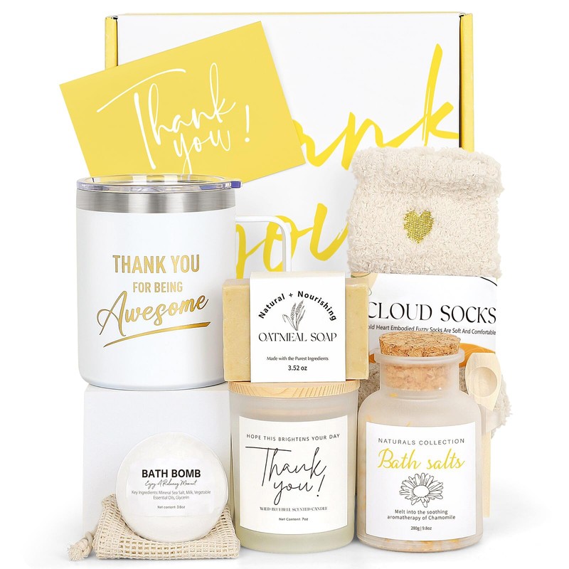 • 💛【PERFECT THANK YOU GIFT IDEA】Anyone who deserves your gratitude should get this thank you gifts box, such as your best friend, mom, sister, family, wife, daughter, co-worker, employee, clerk, boss, girlfriend, teacher, nurse, coaches, mentors, hostess, Pastor, neighbor, volunteers, bridesmaid and more. Brighten their day with a luxurious thank you gift basket!