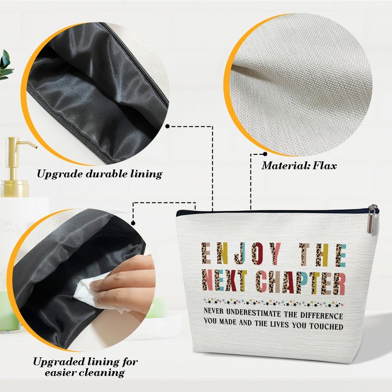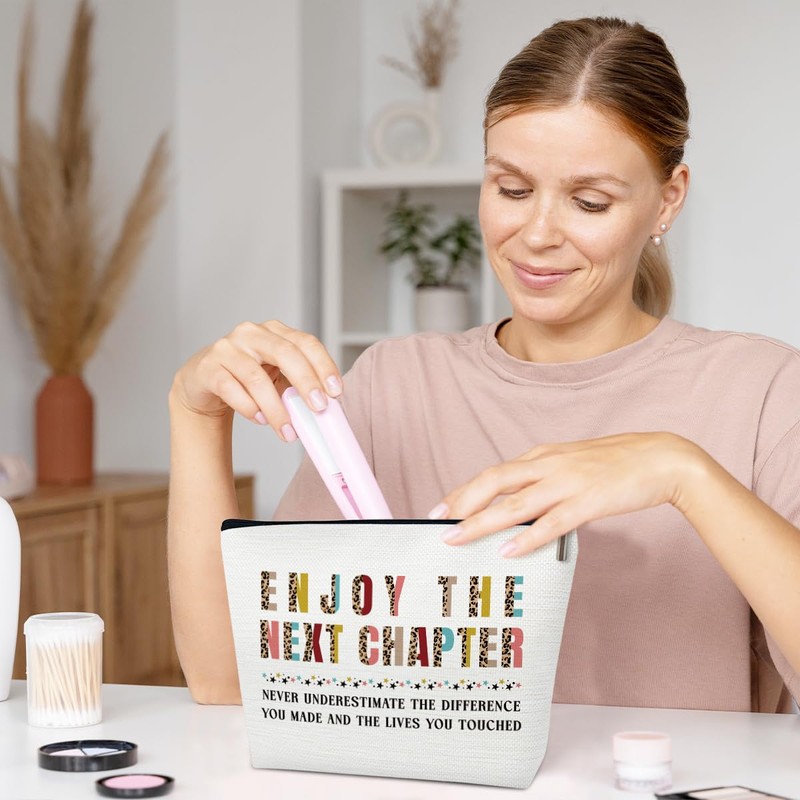 Thank You Gifts Makeup Bag, Retirement Cosmetic Bag for Purse, Gifts for Teacher Appreciation, Coworker Leaving, Women Stuff, Enjoy The Next Chapter