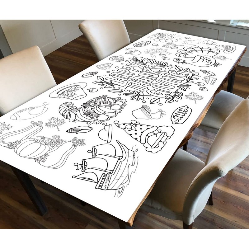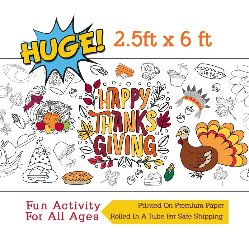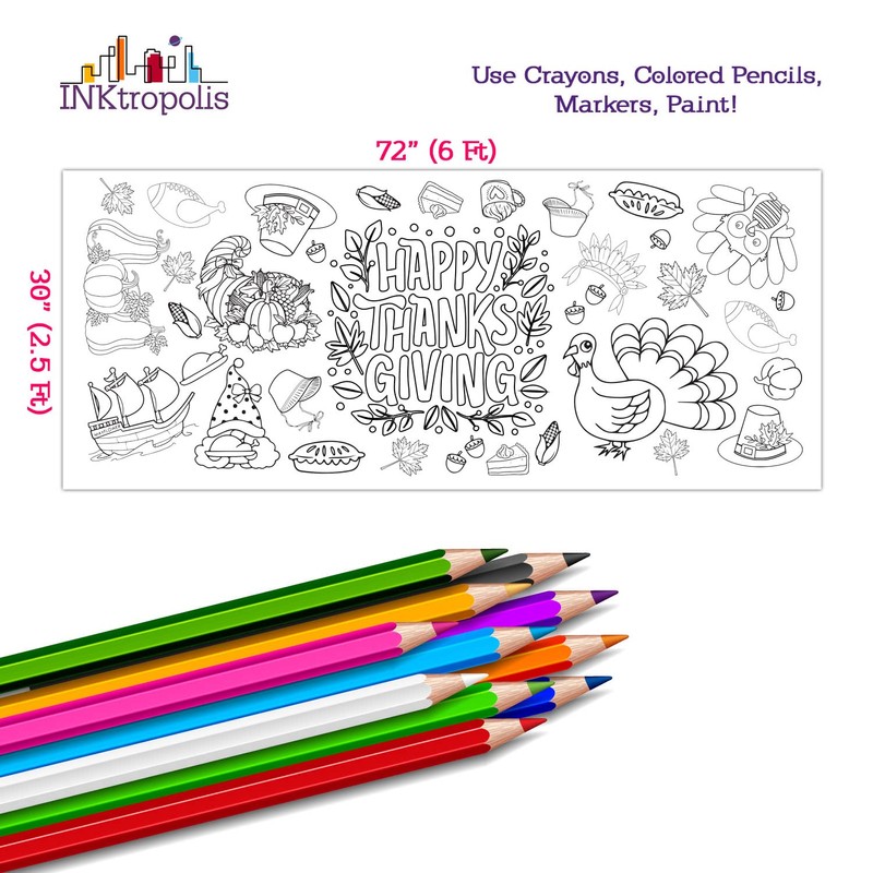Thanksgiving Coloring Banner, Coloring Paper Tablecloth, Thanksgiving Activity - 30 x 72 Inches