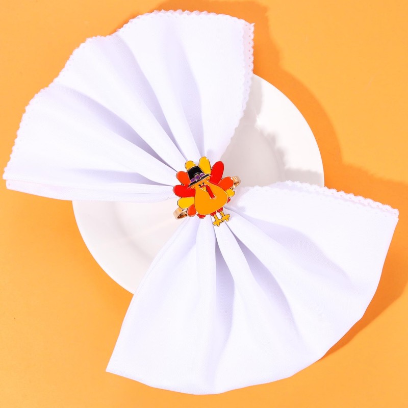 Thanksgiving Fall Napkin Rings Set of 8,Enamel Turkey Pumpkin Napkin Holder Rings for Dinning Table Parties Family Gathering Holiday Banquet Christmas Dinner Serviette Buckles Decor