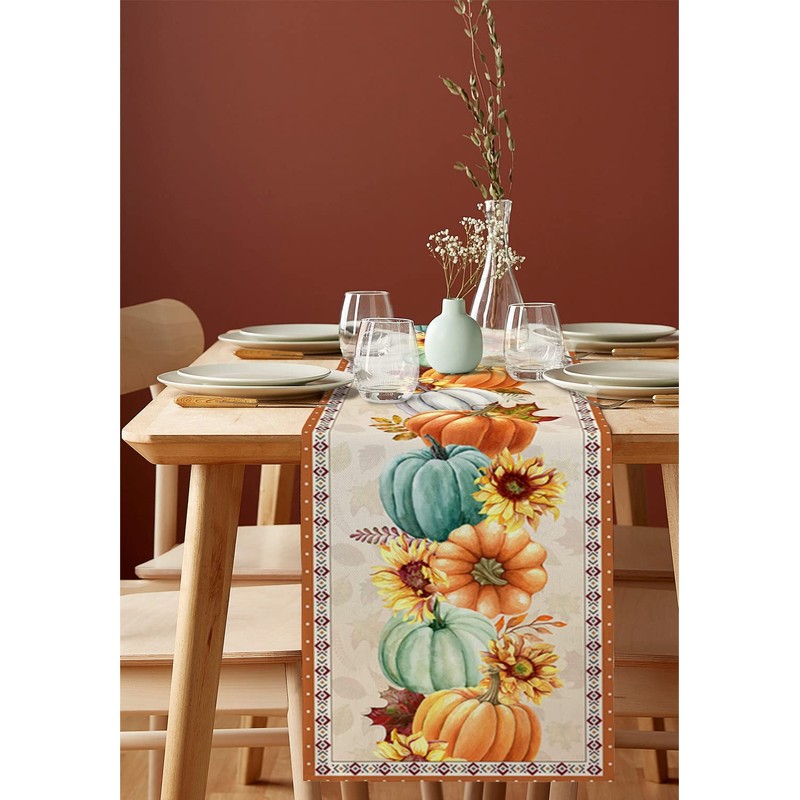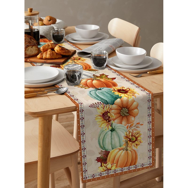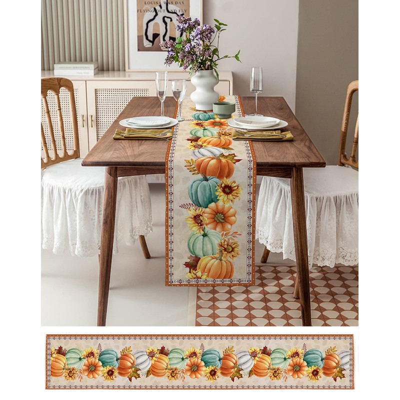 Thanksgiving Fall Pumpkin Table Runners Maple Leaf Orange Lattice 13x90 Inche...