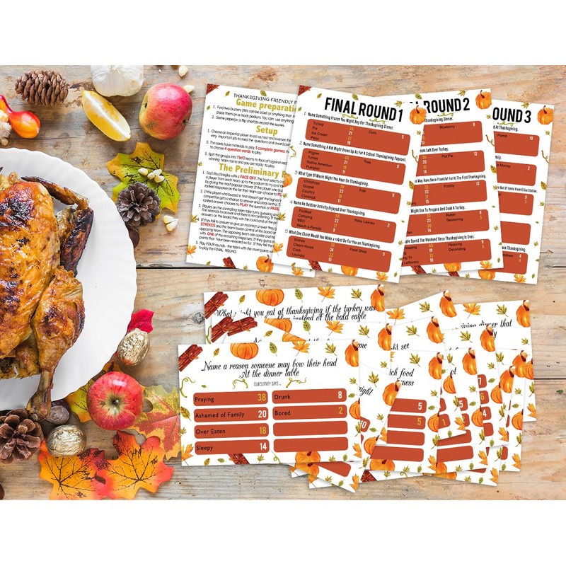 - Gather Everyone for Thanksgiving party games Fun! These Friendly Feud Game Cards are perfect for the whole family to enjoy together