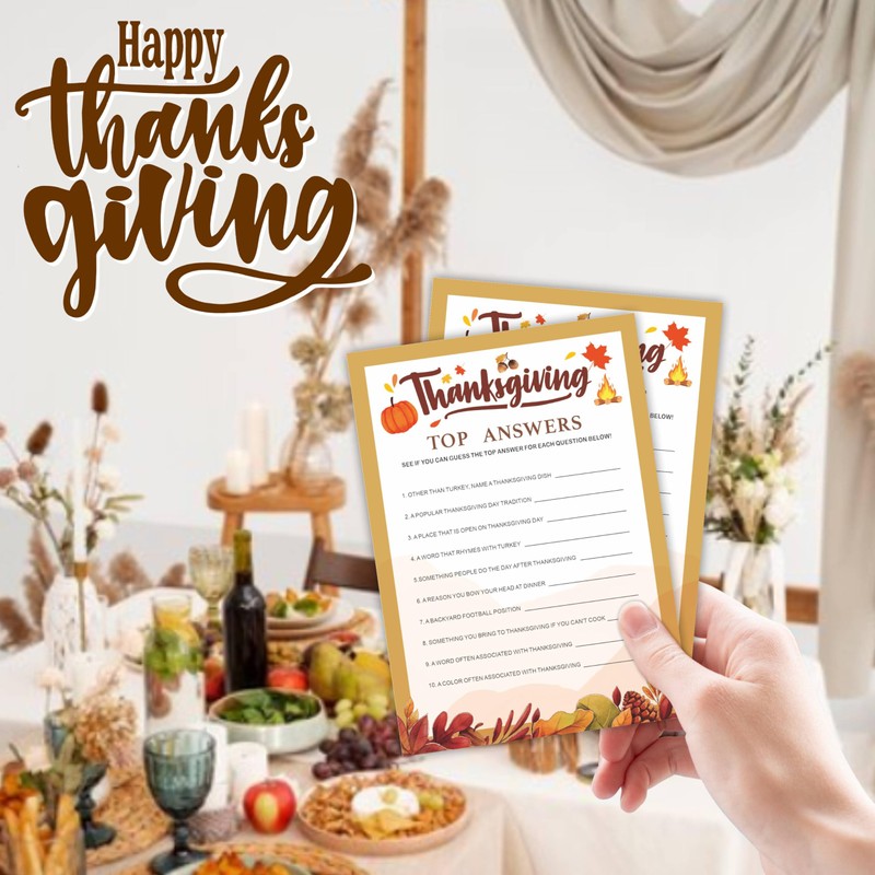 Thanksgiving Game Card Set- Top Answers,Fall Maple leaf Pattern- A Set of 30 Theme Cards With 1 Answer Key- Family Party Game, Friendsgiving, Holiday Activity for Kids & Adults (5 x 7")- B07