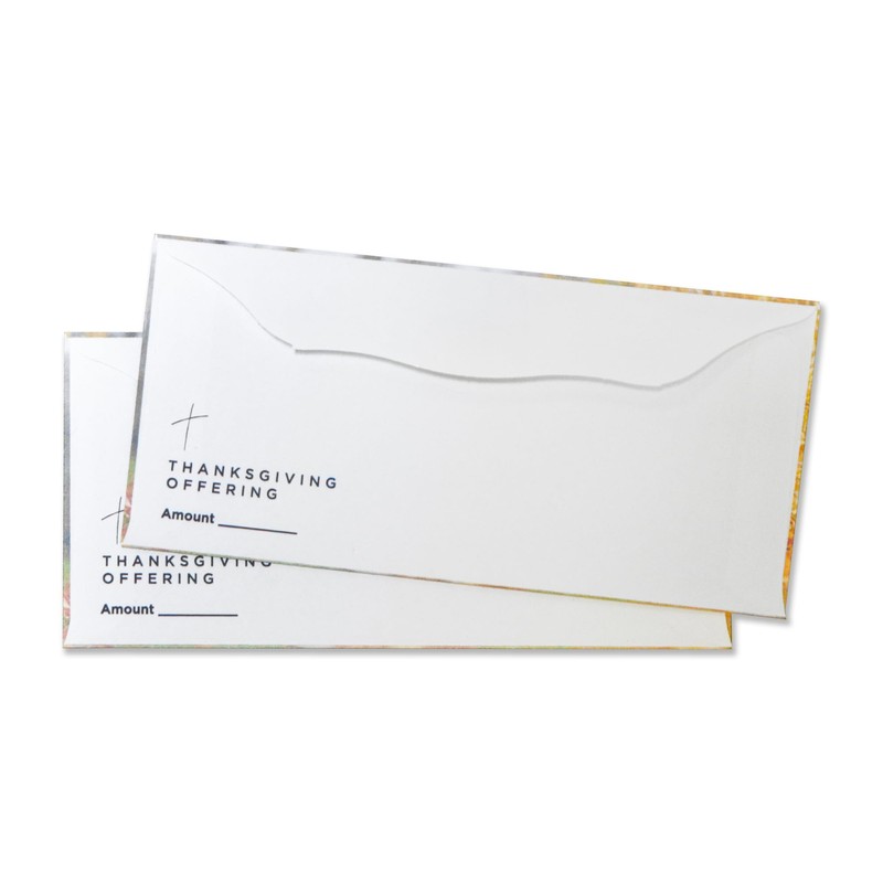 Welcome parishioners and visitors with Bulk Pew Envelopes. Thanksgiving Offering Envelopes are printed in full color, sold in quantities of 100. Increase donations and help raise funds for your church. Whether you have members who forget their envelopes or visitors who would like to give, your church will always benefit from keeping the pews stocked with envelopes. Explore countless specialty envelopes for your church with Mountain Valley Printing.