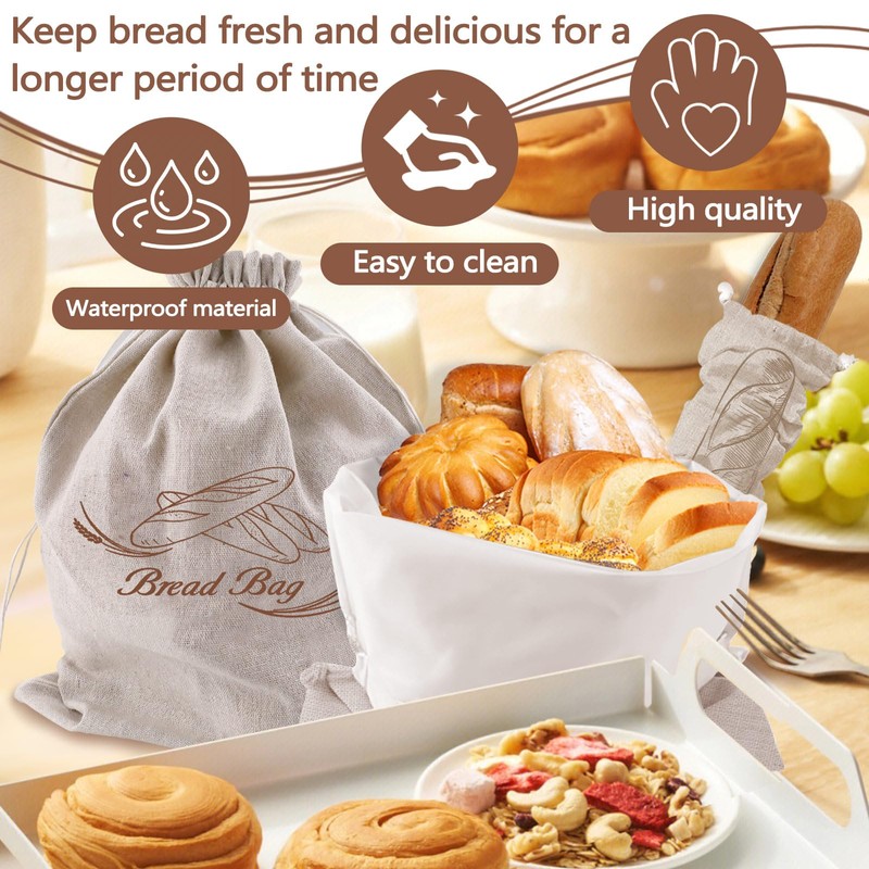 • 【Convenient Usage】Linen bread saver bag has a drawstring close design, making it easy to put in and take out most kinds of breads. Its lining is waterproof and easy to clean, and it can serve you for a long time