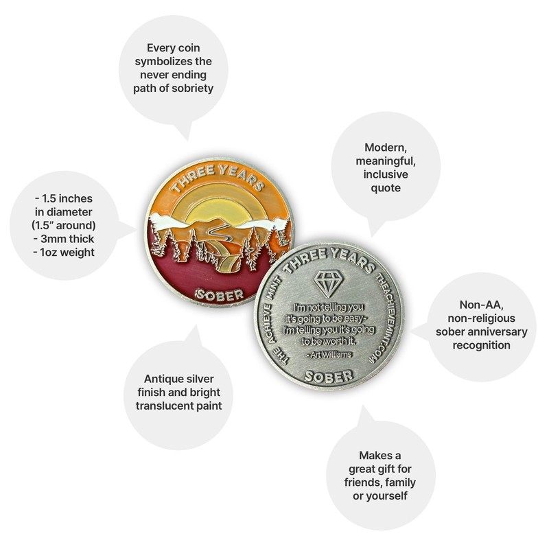 The "3 Years Sober" sobriety medallion is more than just a chip; it’s a companion on your journey, a tangible token of triumph over trials, and a daily reminder that the path ahead is not just going to be easy—but absolutely worth it.