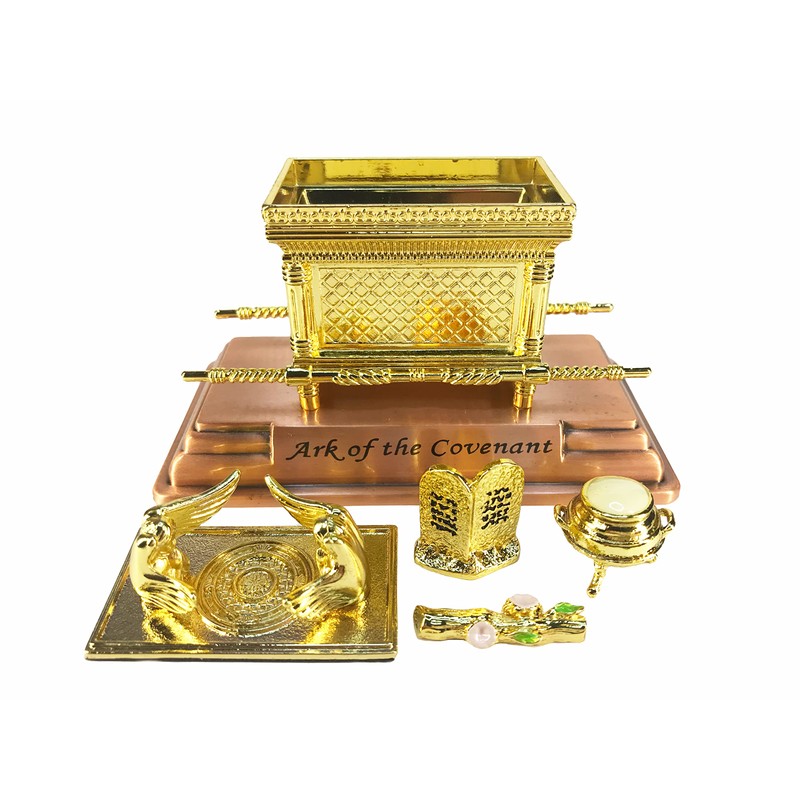 The Ark of The Covenant Replica Gold Plated Statue with Contents, Aaron‘s Rod, Manna, Ten Mandments Stone, Judaic Israel Historic Model Replica, Gift Set, Christian Decoration