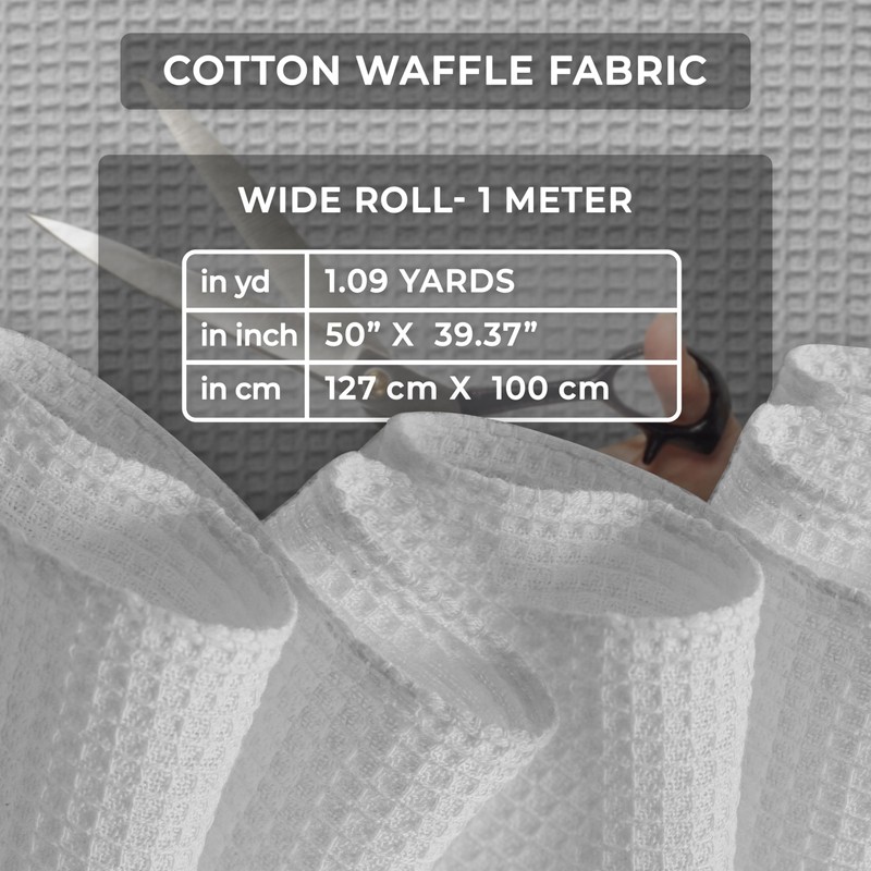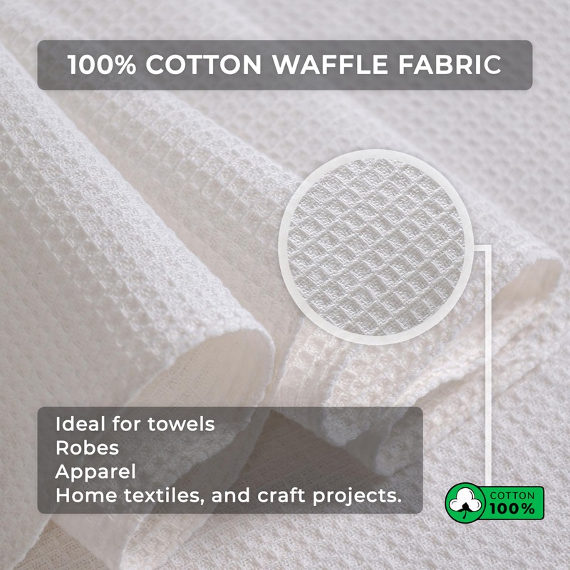 THE ART BOX Medium Weight 100% Cotton Waffle Fabric – 1 Meters Bleached Material for Sewing, Apparel & Crafts