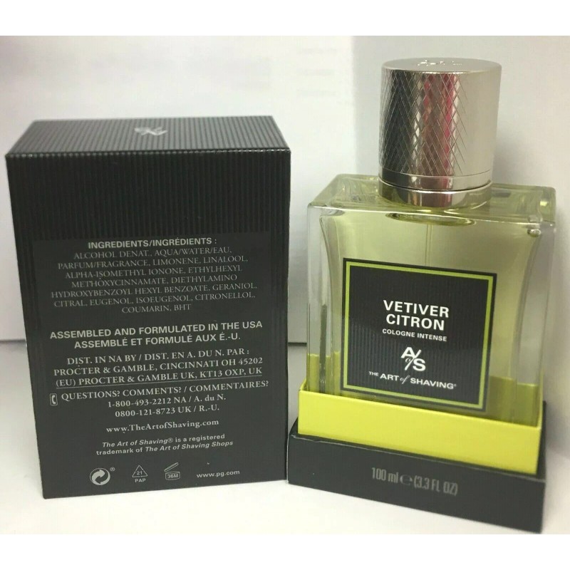 The Art of Shaving Cologne Intense Vetiver Citron For Men 3.3oz/100ml Boxed New