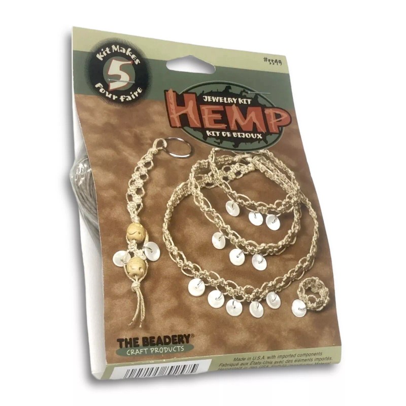 The Beadery HEMP Jewelry Kit 5 Projects Shell Necklace Bracelet Anklet Ring Keychain #5549