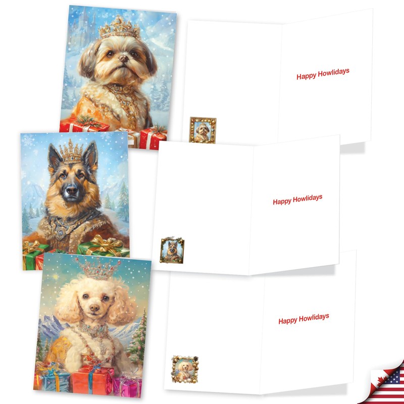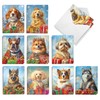 The Best Card Company 20 Assorted Christmas Notecards Box Set 4 x 5.12 Inch with Envelopes (10 Designs, 2 Each) Royal Holiday Dogs AM8596XSG-B2x10