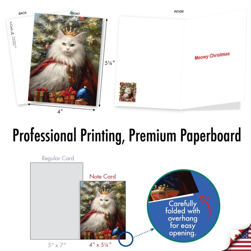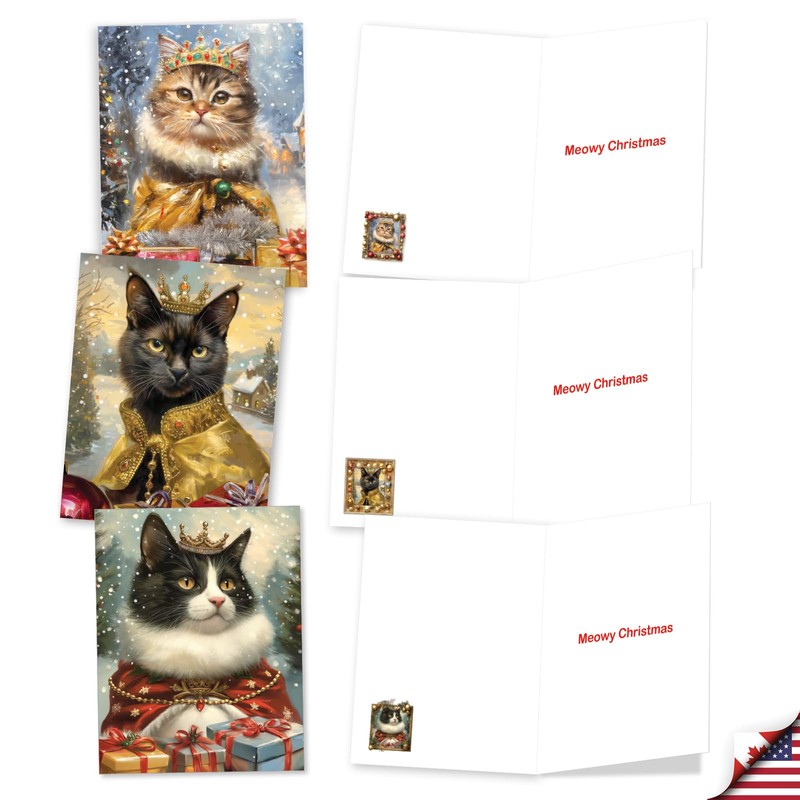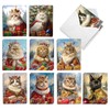 The Best Card Company 20 Assorted Christmas Notecards Boxed Set 4 x 5.12 Inch with Envelopes (10 Designs, 2 Each) Royal Holiday Cats AM10700XSG-B2x10