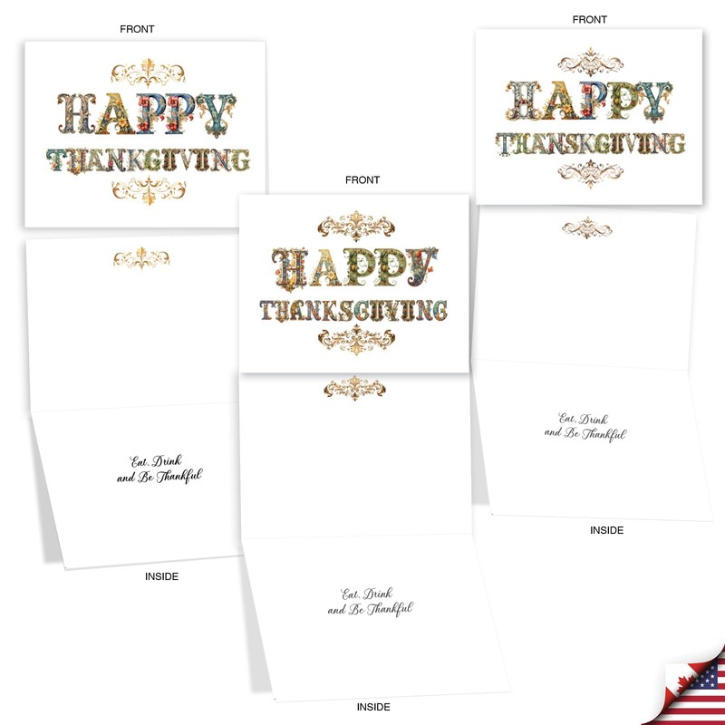 The Best Card Company 20 Assorted Thanksgiving Notecards Boxed Set 4 x 5.12 Inch with Envelopes (10 Designs, 2 Each) Fancy Feast AM10786TGG-B2x10
