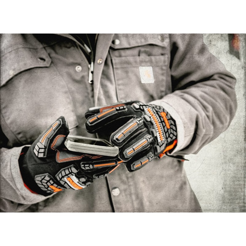• Heavy duty TPR on fingers, thumb, and knuckle bar provides impact protection.