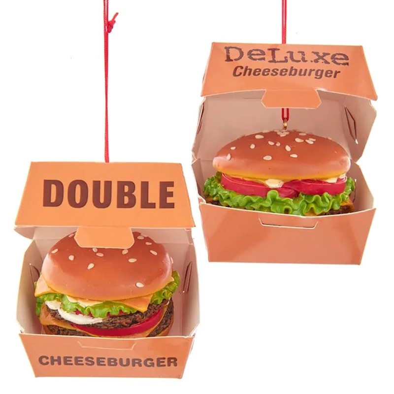 - Decorative Hanging Ornament: Hang the stockings and trim the tree with this junk food ornaments sets! Bring a smile to any cheeseburger lover's face this holiday season with this set of 2 fast food burgers ornaments. Perfect for the holidays or for your year-round seasonal tree ornament.