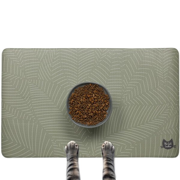 The Cat Ladies Cat Feeding Mat - Waterproof & Dishwasher Safe Small Pet Eating Placemat - Cat & Dog Food Mats for Food and Water Bowl - Protect Floors from Mess - Tropical Leaves