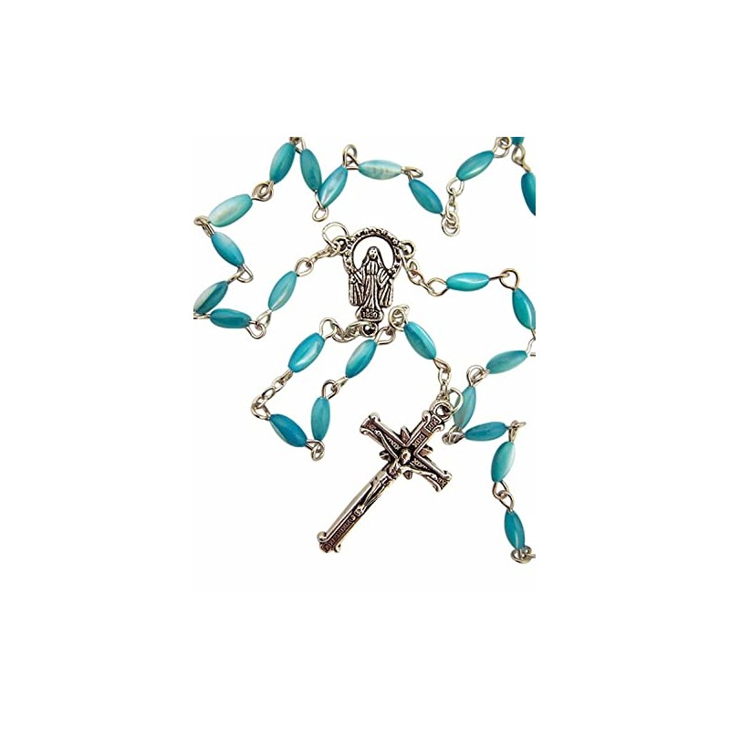 The Christian World Light Blue Imitation Simulated Pearlescent Glass Bead Our Lady of Grace Rosary vbn-fh-3678