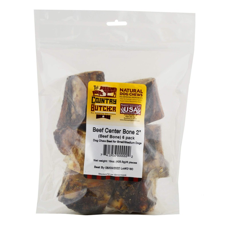 The Country Butcher 2" Meaty Beef Dog Bones, Made in USA, Naturally Marrow Filled Dog Chews, 6 Count, Moderate to Aggressive Chewers, Small Size Dogs