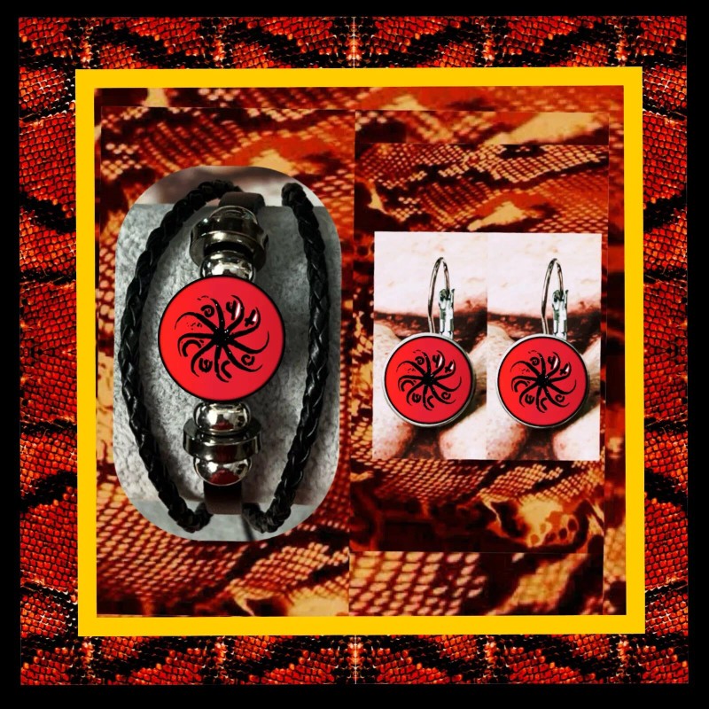 THE CURE LOGO SYMBOL SET OF TWO EARINGS LEATHER BRACELETS