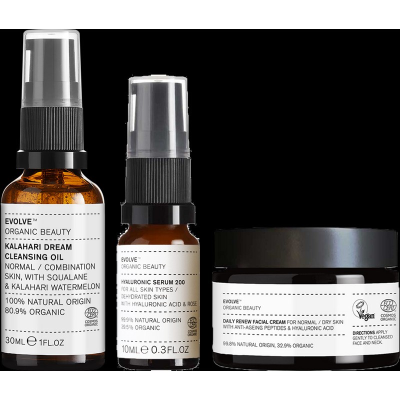 Discover the secret to hydrated, healthy-looking, radiant skin! This set contains three travel-size skincare essentials. Wonderful as a gift.