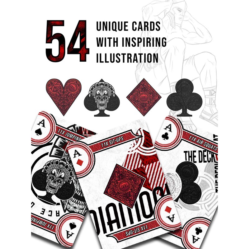 - 54 Unique Exercise Cards: The Deck of Death offers 54 unique exercise cards, providing endless variety to keep your workouts fresh and engaging. Each card features a different exercise, ensuring you target all major muscle groups for a balanced and effective fitness routine.