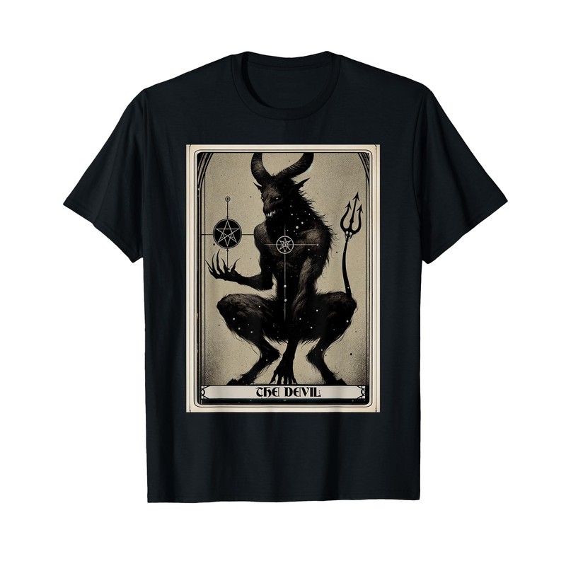 - Original The Devil tarot card clothing, ideal for tarot readers, occult, and lovers of classic arcana. Perfect for those who appreciate the art of divination, enjoy psychic readings, witchcraft or partake in magical gatherings and matching costume parties