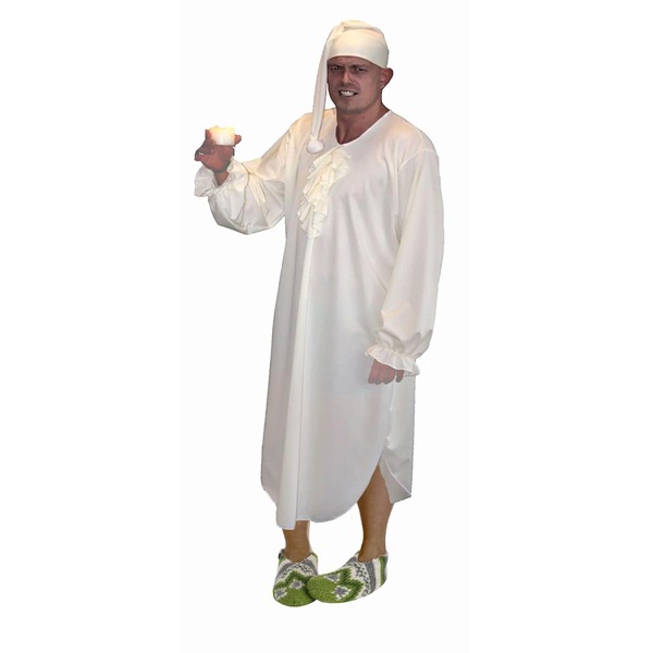 The Dragons Den Adults Ebeneezer Scrooge Victorian Nightgown & Night Cap Christmas Carol Fancy Dress Costume [Adults L-XL upto 52" Chest]