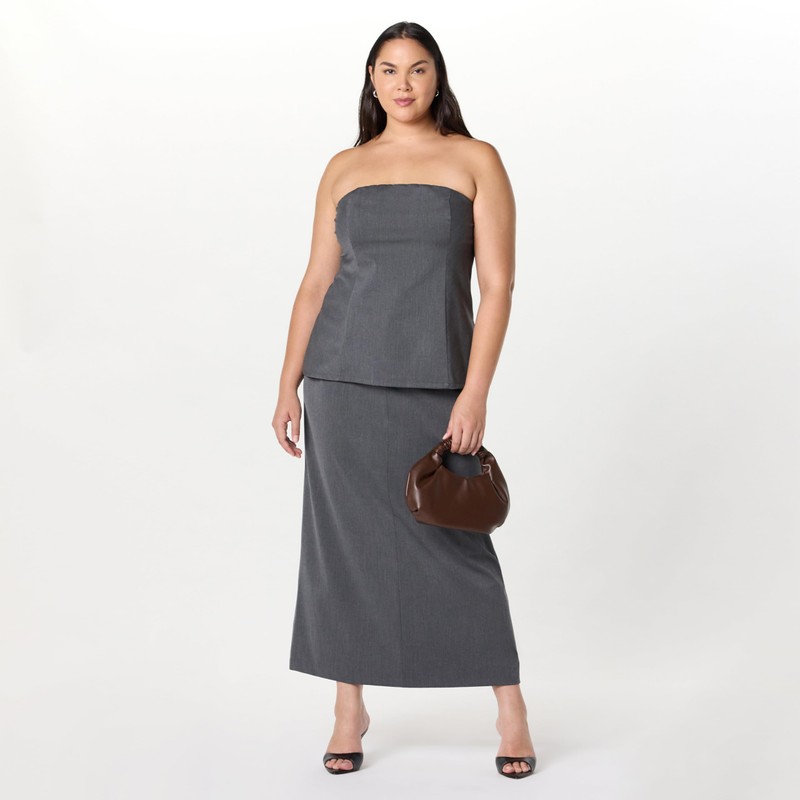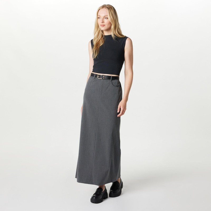 The Drop Women's Denis Woven Long Column Skirt, Heather Grey, M