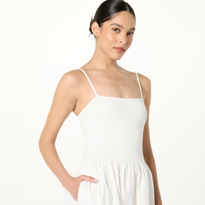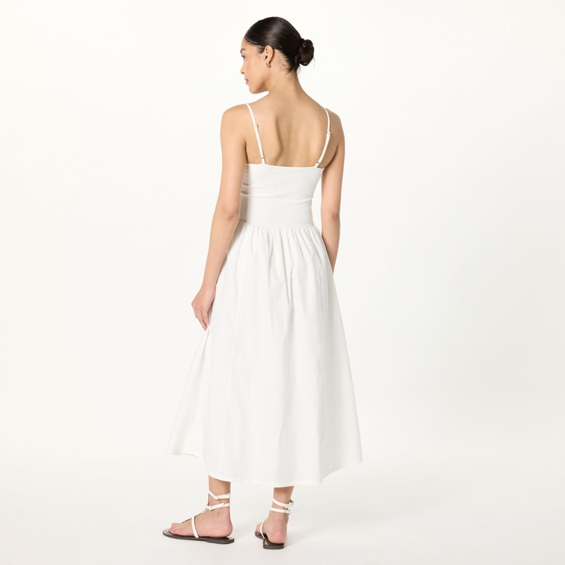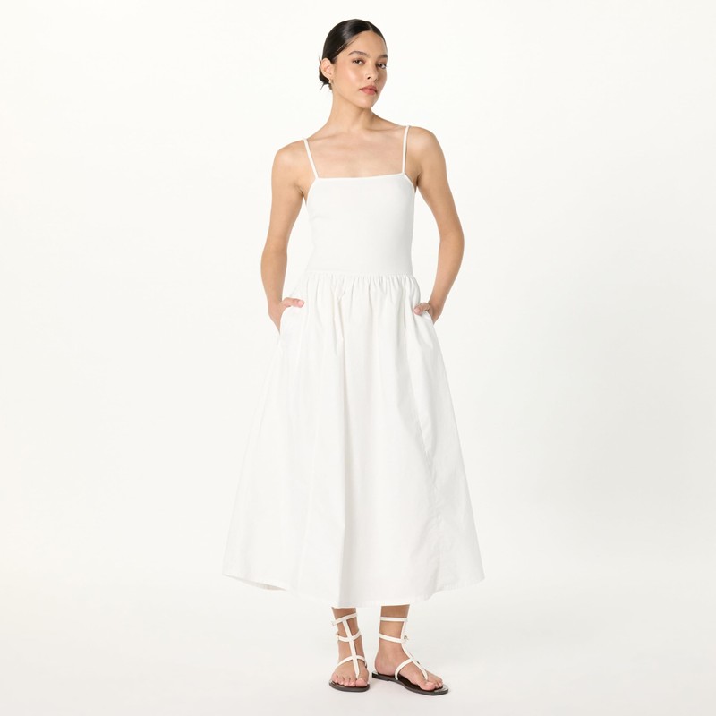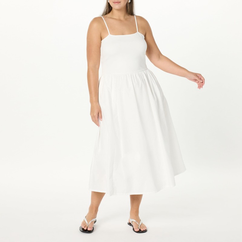 The Drop Women’s Robyn Mixed Media Spaghetti Strap Midi Dress, White, M