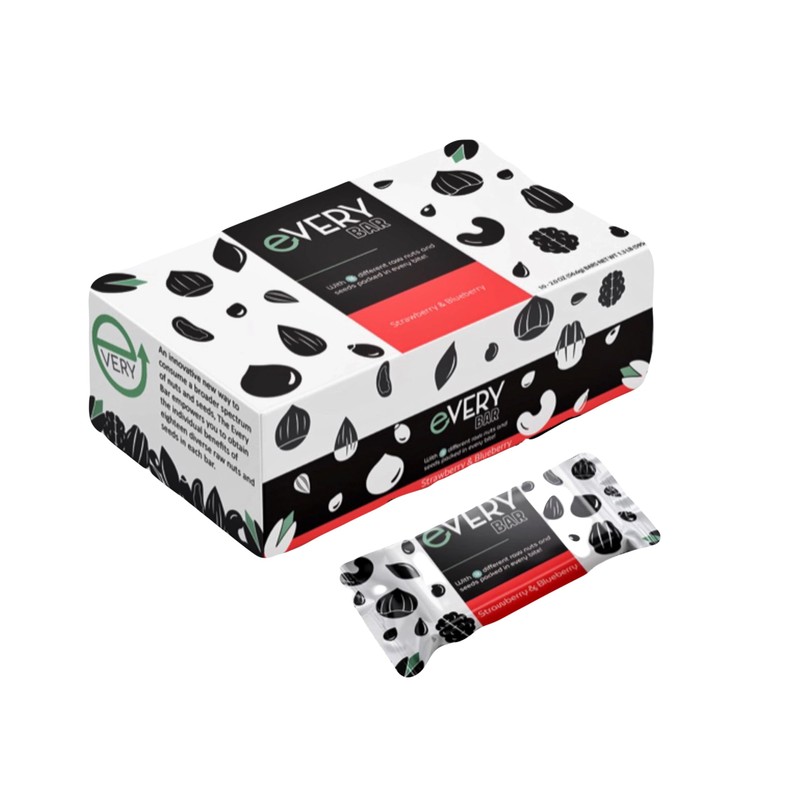The Every Bar is a fruit, nut, and seed bar made with a nutrient dense variety of 18 different nuts and seeds, empowering you to obtain the individual benefits of diverse ingredients in every bite! The Every Bar is held together by organic California dates to both bind the bar together and sweeten it without added sugars or artificial sweeteners. This vegan and naturally gluten-free bar comes in three delicious flavors and contains 10 Bars in each box for you to enjoy whenever you're in the need of a filling snack! Please visit our website at www.everyfoodsllc.com to learn more about our amazing product!