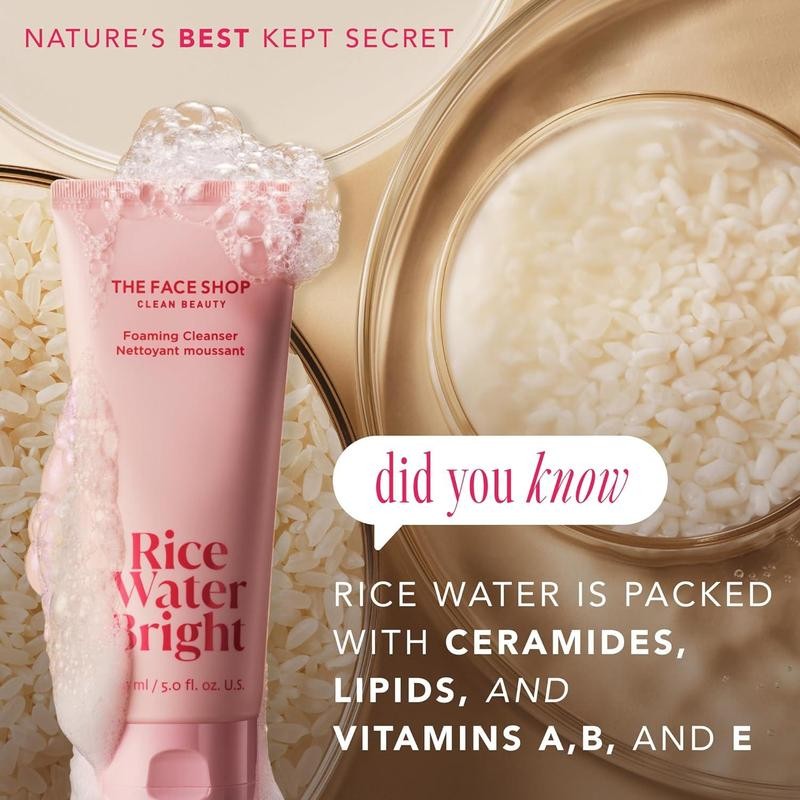 The Face Shop Rice Water Bright Routine Kit, Foaming Cleanser, Vegan Serum, Facial Cleansing Set for Oily Dry Skin Skincare Skin Repair