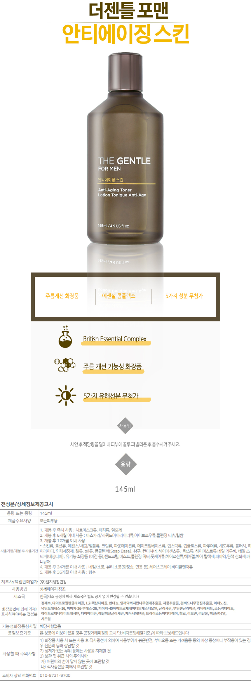 THE FACE SHOP The Gentle For Men Anti-Aging Skin 145ml / 더페이스샵 더젠틀 포맨 안티에이징 스킨 145ml