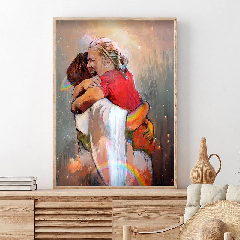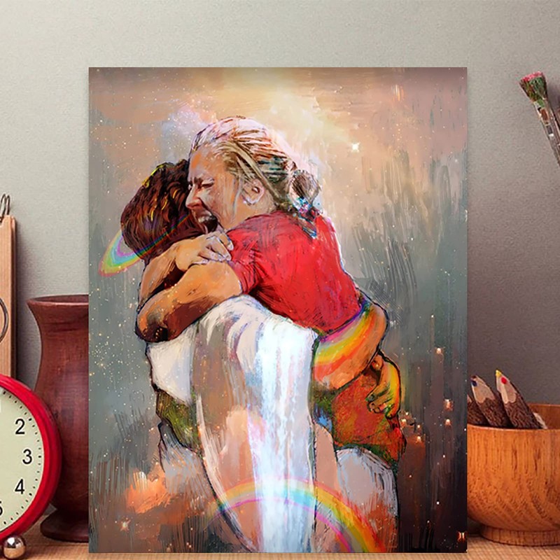 The First Day In Heaven Prints Girl Embracing & Hugging Jesus Wall Art Canvas Posters I Held Him Would Not Let Him Go Jesus Christ Poster Pictures First Day In Heaven Prayer For Healing Christian
