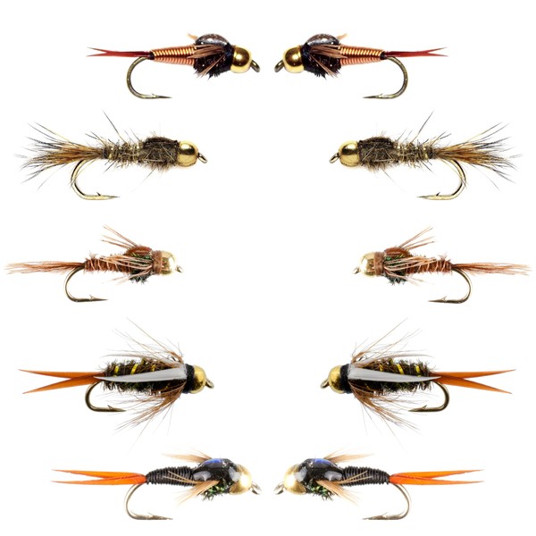 The Fly Fishing Place Basics Collection - Tungsten Bead Head Nymph Assortment - 10 Wet Flies - 5 Patterns - Hook Sizes 10, 12, 14, 16