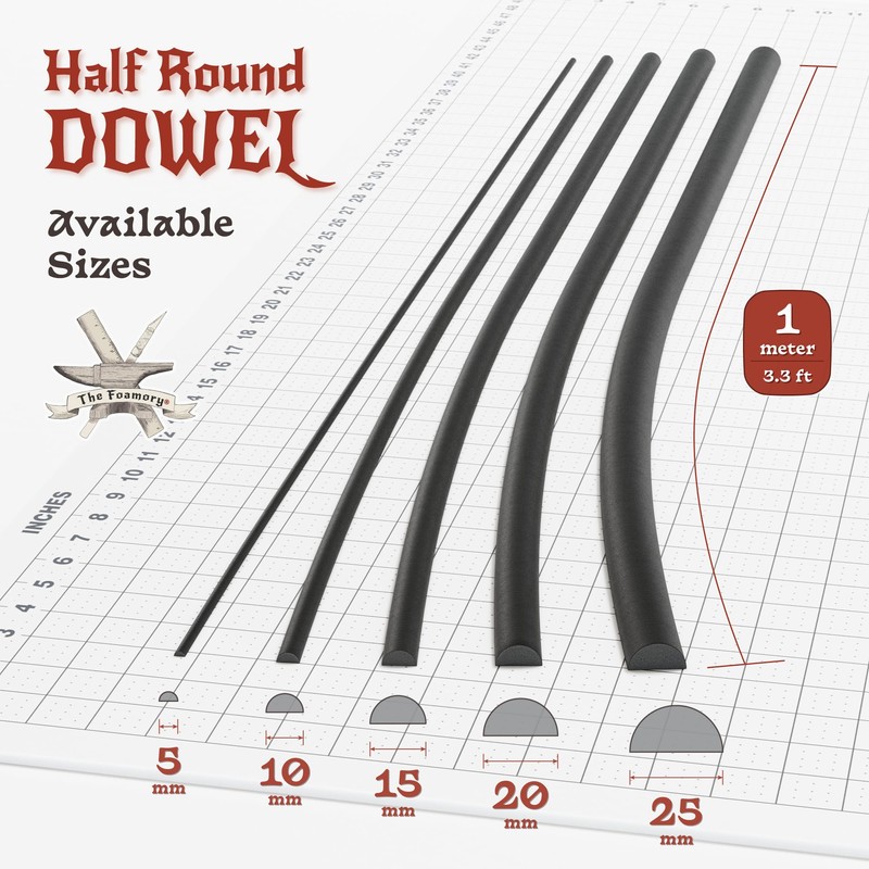 The Foamory High Density EVA Foam Dowel/Bevel - 1 Meter Cosplay Craft Material - Multiple Shapes - Multiple Diameters 5-40mm - Black (Single Pack - 20mm Diameter - Half-Round Dowel)
