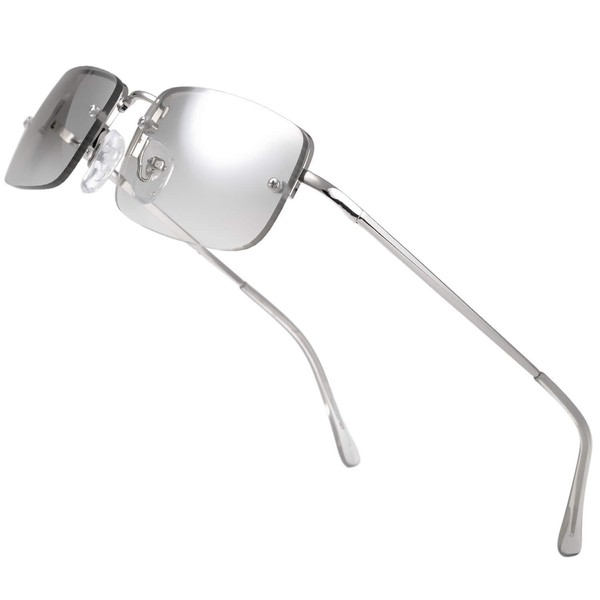 The Fresh Minimalist Small Rectangular Sunglasses Clear Eyewear Spring Hinge - Gift Box Package - FR1M4002MC01 (Silver, Gradient Clear, 51)