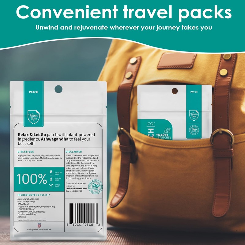 • The Friendly Patch Ashwagandha patches comes in a resealable pouch for making traveling with your chill and calm Patch easy and convenient. Great for airplanes travel use.