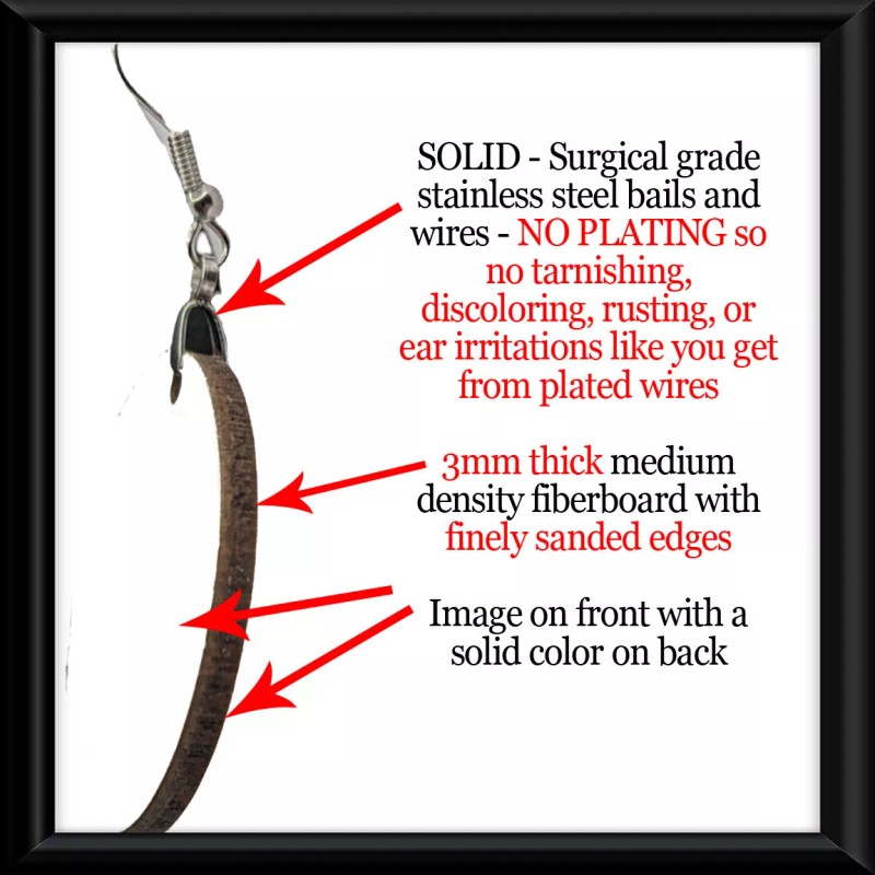 - Features: Nickel-Free, Lead Free, Made in the USA, Handcrafted in Cleveland, Ohio, Hypoallergenic, Lightweight, Small Home Business, NO PLATING - so NO TARNISHING, DISCOLORING, OR EAR IRRITATION, SURGICAL STAINLESS STEEL FRENCH WIRES, Secure Pinch Bails keep earrings front facing