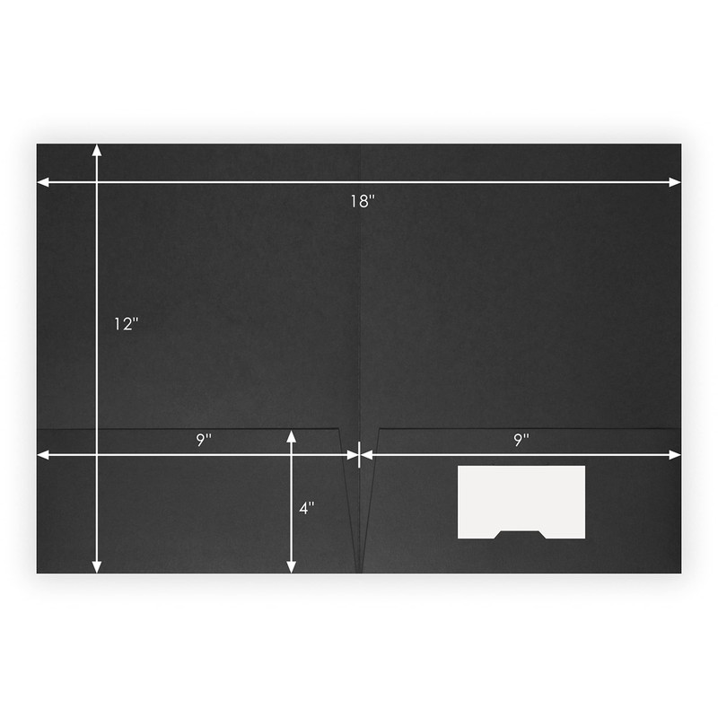 - SIZE: 9" x 12" folders featuring two 4" inside pockets with business card holder slits in right pocket