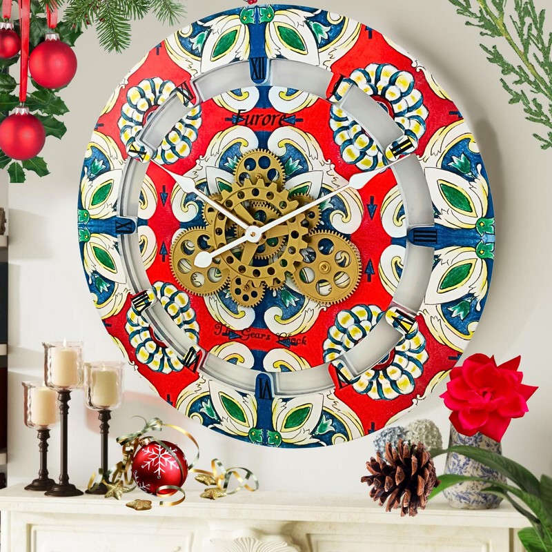 The Gears Clock Wall Clock Italy Collection with Moving Gears (Furore, 24 inch Round)