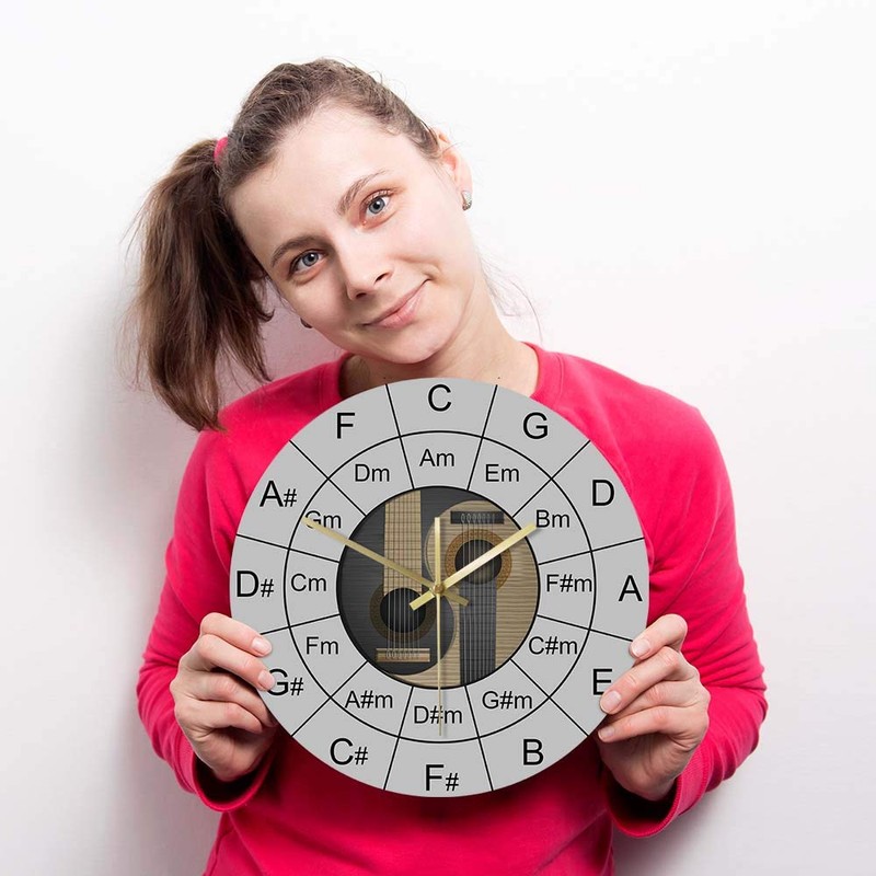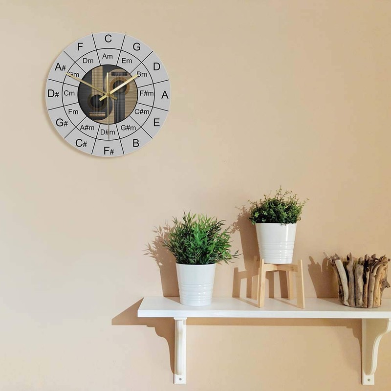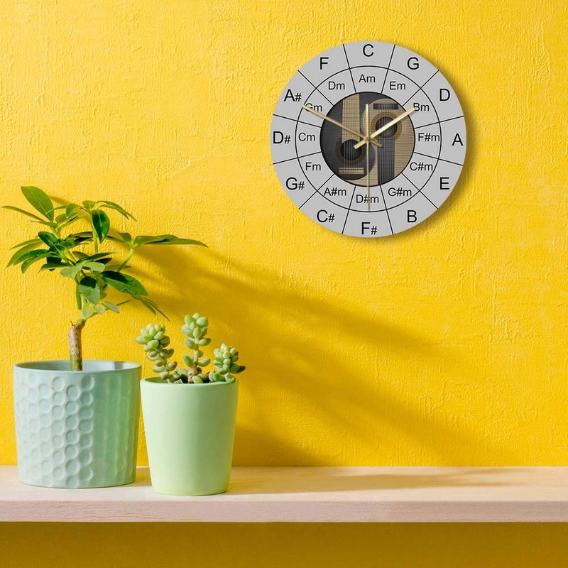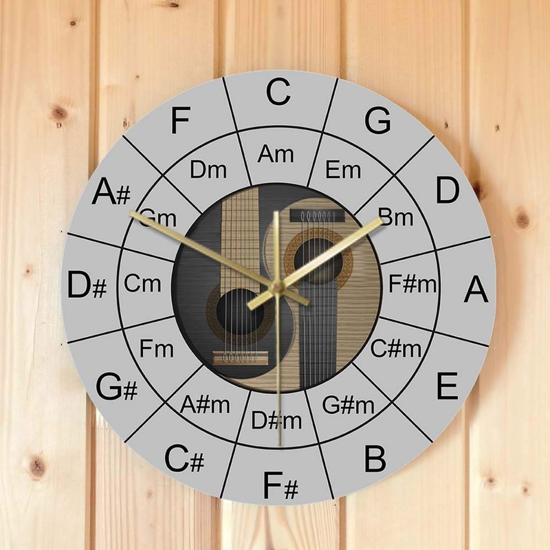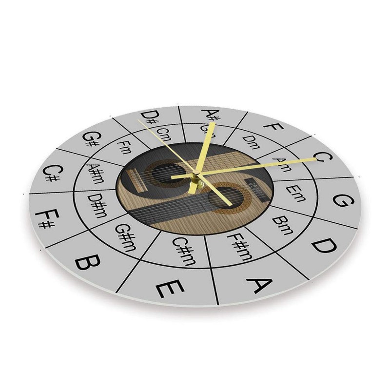 The Geeky Days Guitar Chords Yin and Yang Music Silent Non Ticking Wall Clock Battery Operated Qaurtz Acoustic Bass Guitar Circle of Fifths Chart Hanging Watch 12inch Bassist Bass Player Gift
