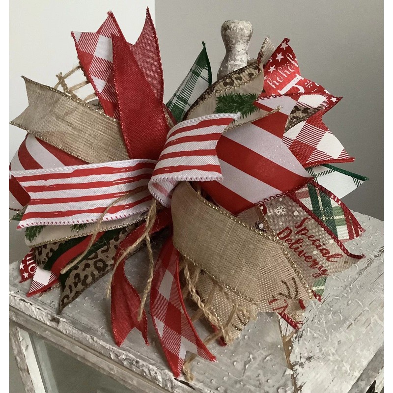 The Glitz & Glam Boutique Red & Green Christmas Messy Bow, Christmas Lantern Bow - Handmade 10" Christmas