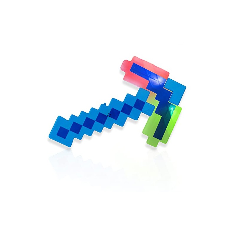 - Realistic combat sound effect - Batteries included Flashing LED Pixel Pickaxe
