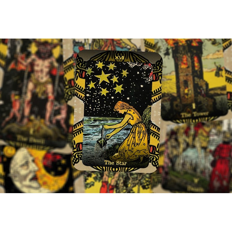 The Golden Dawn Tarot Cards, inspired by the classic Rider-Waite Tarot deck, reflect the profound symbolism and mystical imagery of Pamela Colman Smith's renowned illustrations.