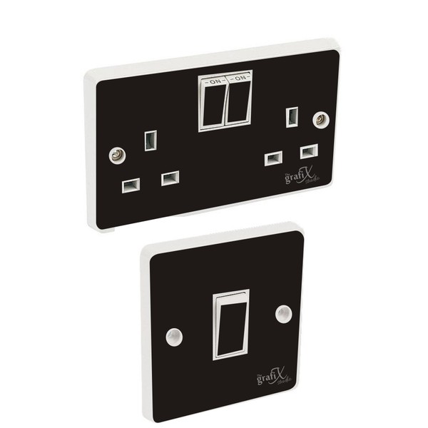 the grafix studio Black Gloss Light Switch & Double Socket Sticker Vinyl/Skin cover